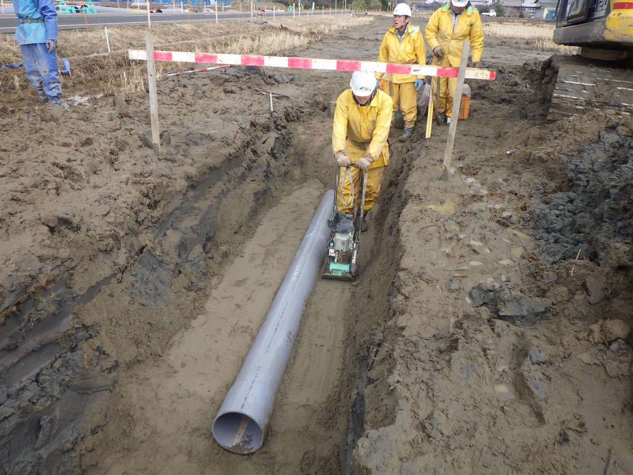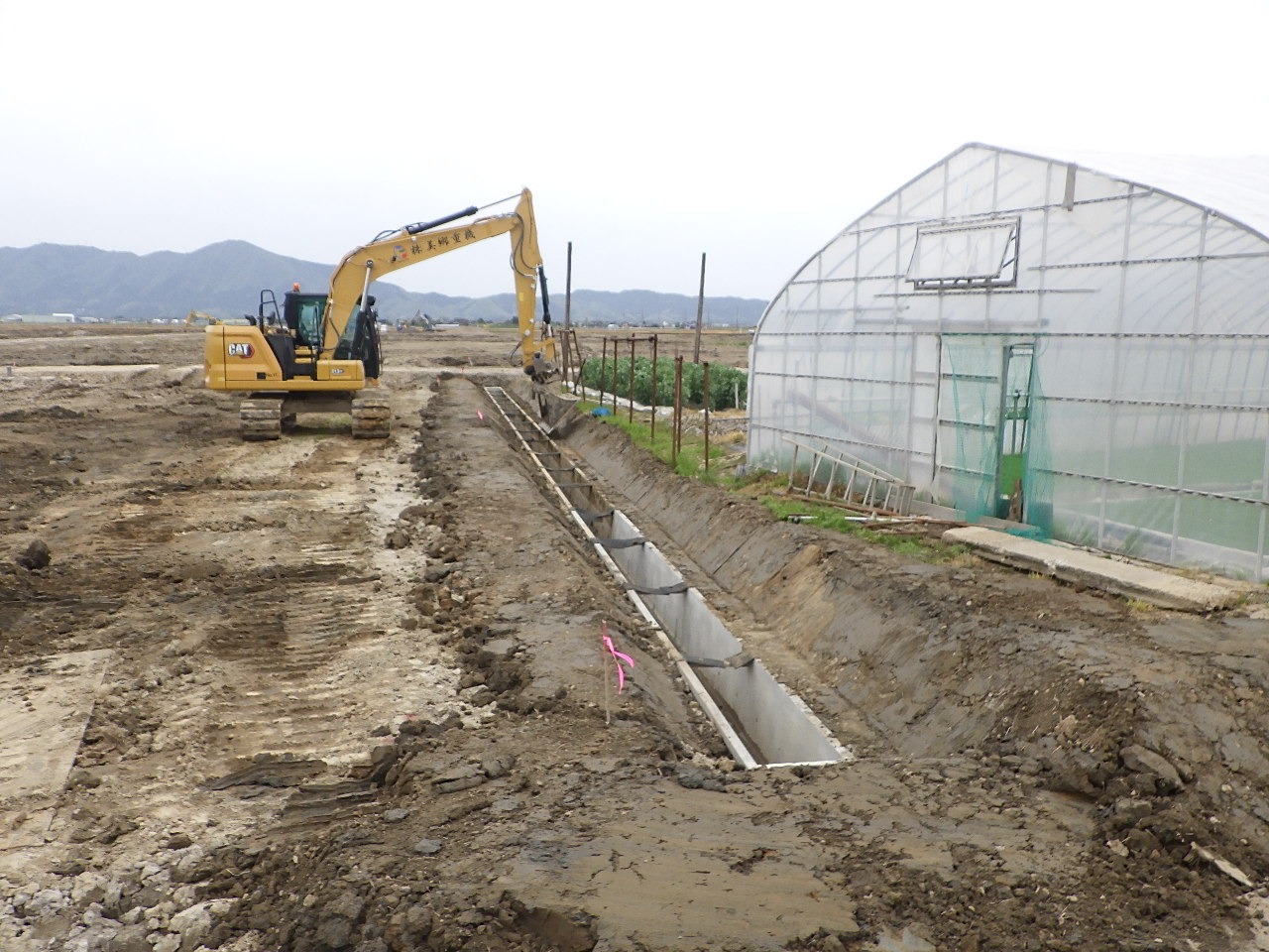 管水路の施工も始まりました。漏水の無いようしっかりと施工していきます